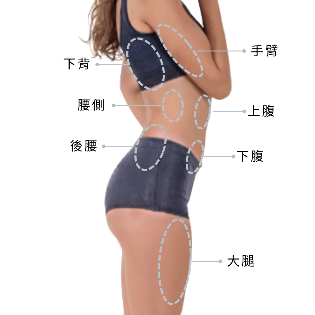 威塑抽脂最常見的部位包括:腰部、腹部、背部、腿部、手臂